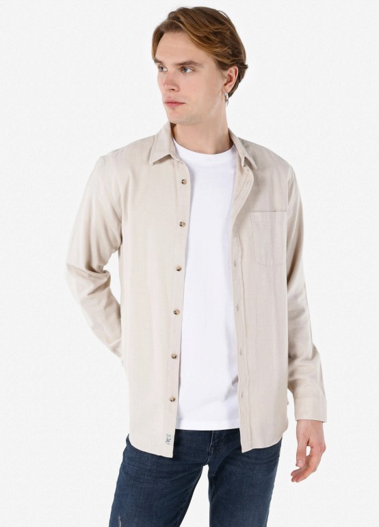 %100 pamuk malzeme ile tasarlanan bej erkek gömlek u.kol gün boyu rahatlık hissi veriyor. Normal kesimli ürün vücuda uygun şekilde tasarlanırken hareket kabiliyetini kısıtlamadan şıklığın korunmasını sağlıyor.